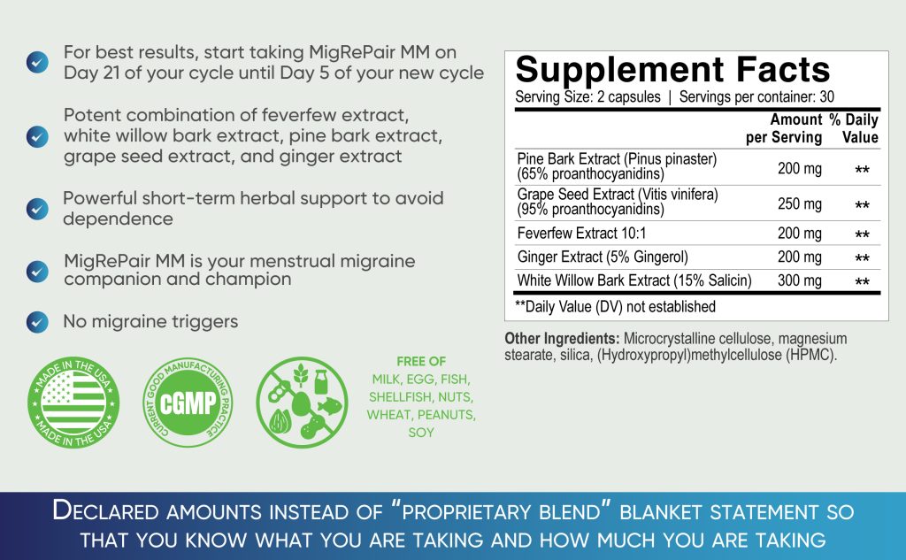 MigRePair MM | Doctor Formulated Herbal Migraine Supplement for Women – Menstrual Migraine Relief