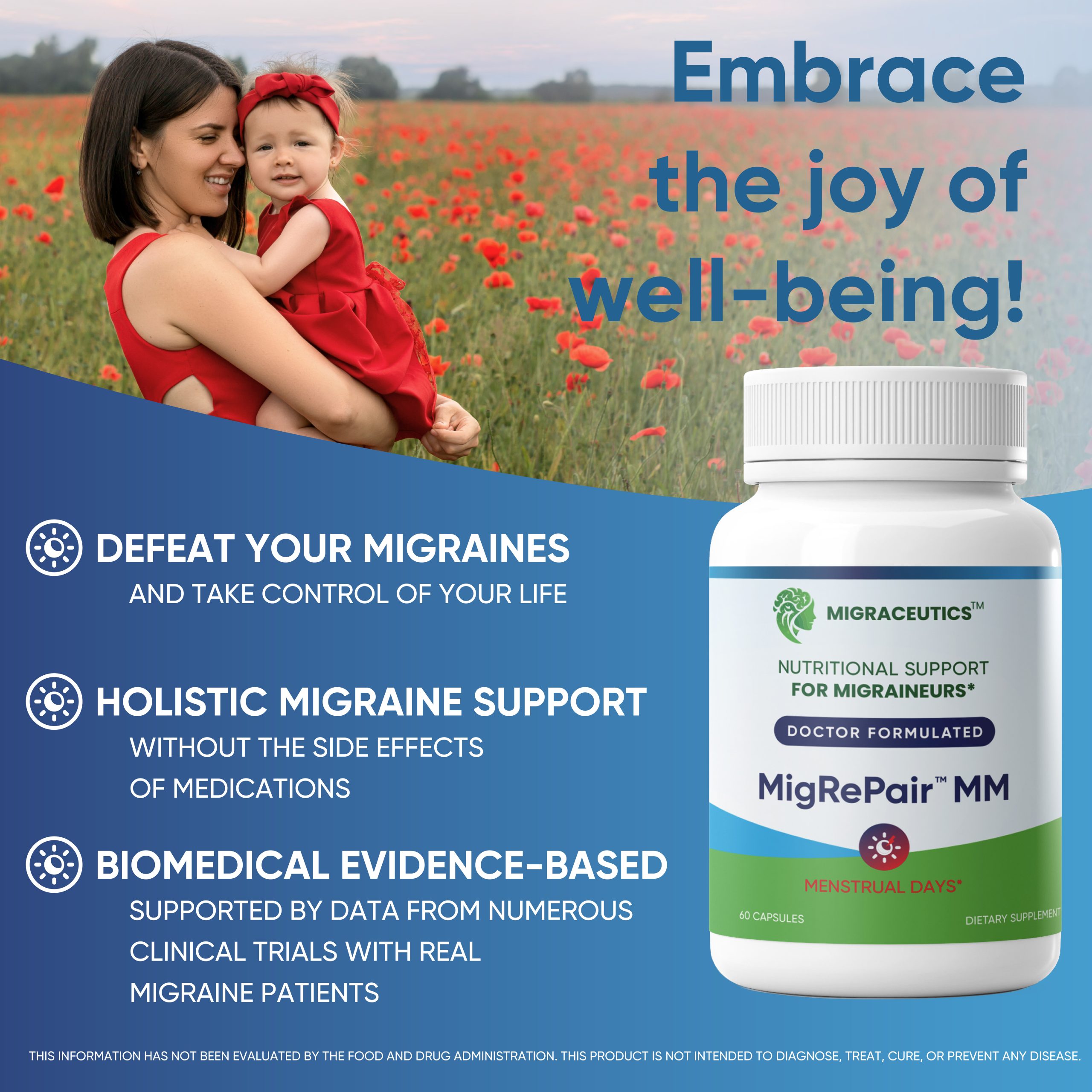 Migraine supplement created by a female doctor based on decades of migraine-focused biomedical research and real clinical trials. MigRePair MM helps regulate prostaglandins, balance hormones, and support vascular tone, addressing key biological factors behind menstrual migraines.